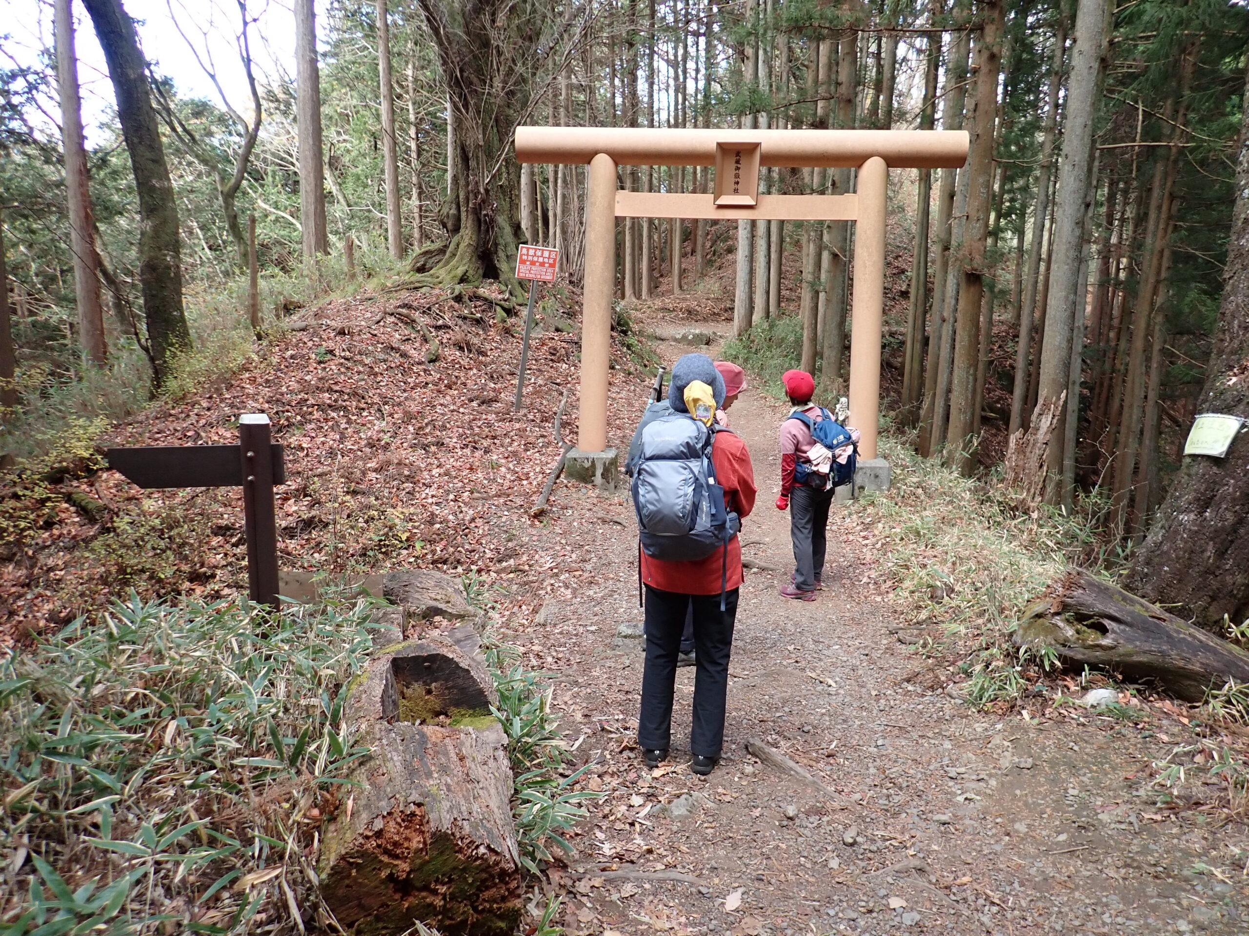 右が日の出山、御岳山方面へ、立派な鳥居有り