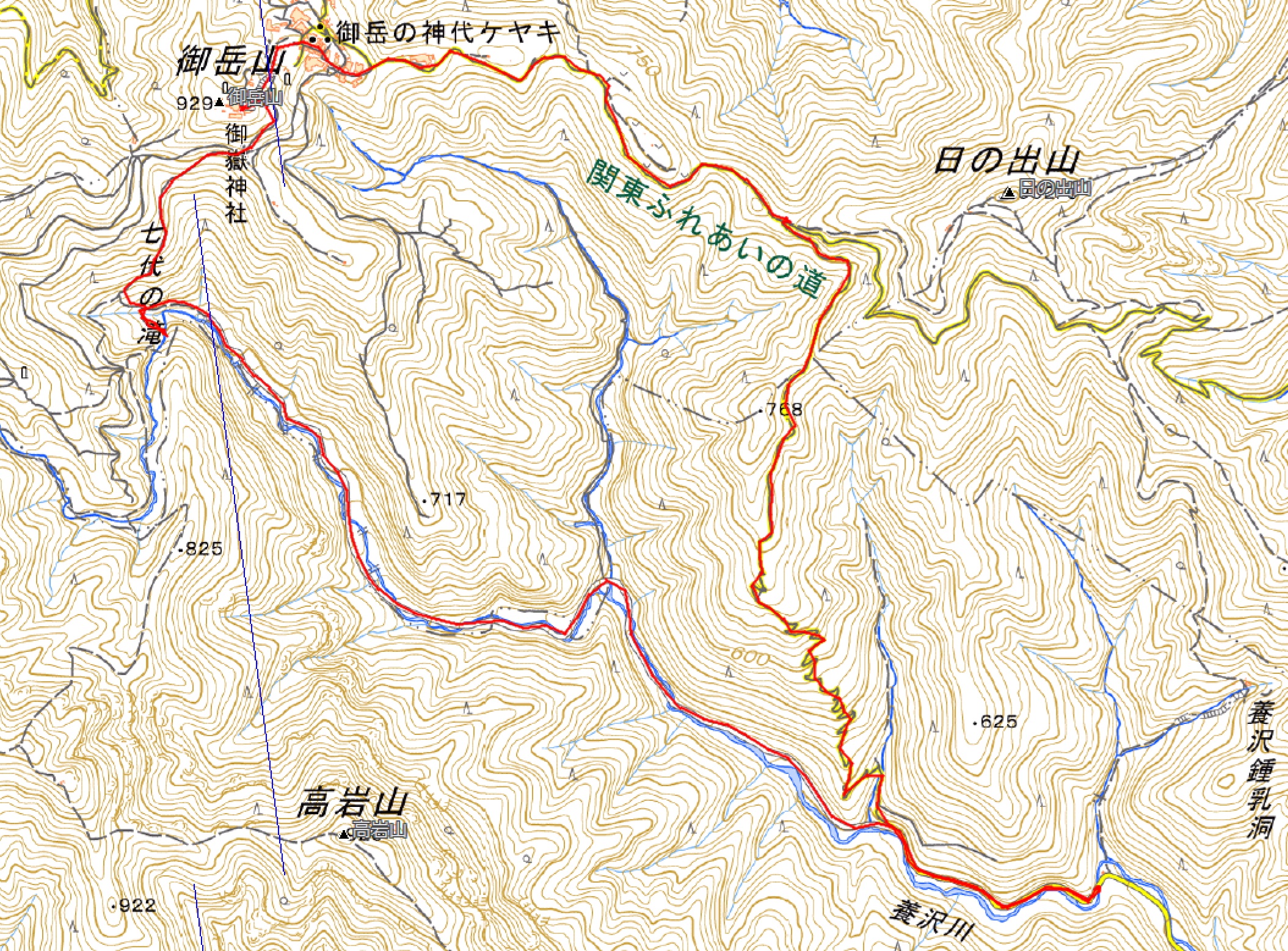 ケーブルカーの反対側(南側)から登る。日の出山の登山道で尾根筋までよく整備されている。そこからは関東ふれあい道で道幅も広く歩きやすいい。御岳山神社、奥の院階段が一番きつい。奥の院から七代の滝の登山道は石が出っ張り歩きづらい、七代の滝から林道まで崩れる可能性ありの表示で通行を許可されていない。このルートは自己責任で通過